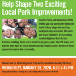 Seattle Parks and Recreation (SPR), in partnership with Africatown Community Land Trust, the William Grose Center for Cultural Innovation, and A Personal Point of View, LLC, invites all to join us for a community event on Saturday, February 7, 2026 from 10 a.m. to 12 p.m. Please join us at… [ Keep reading ]