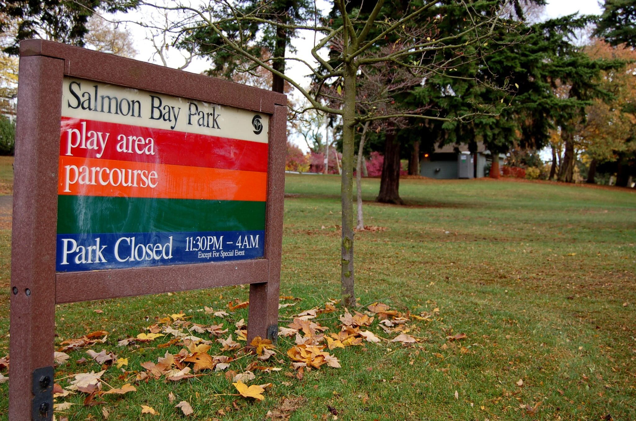 Tucked into a quiet neighborhood, Salmon Bay Park offers a peaceful green retreat beneath tall, shady trees. Visitors can enjoy leisurely picnics at tables scattered across gently sloping grassy hills, while the lively sights and sounds of nature surround them.