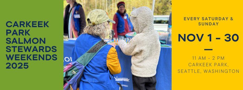 Every weekend day throughout November, dedicated Salmon Stewards will be stationed at Carkeek Park. These knowledgeable volunteers will be on hand to answer your questions and share fascinating insights into the world of salmon. You’ll learn about their incredible lifecycles, the specific habitat they need to thrive, and the importance of urban watersheds like Piper’s Creek.