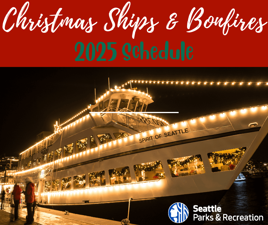 This year Seattle Parks and Recreation is pleased to offer bonfires at select Seattle parks where the Christmas Ships will stop. Community members can bring a warm drink in a thermos and gather around the fire to watch and even sing along to the choir while the night lights up with holiday cheer. Dress warm, bring umbrellas just in case, and join with your community! (The ships make stops outside the park system too.)